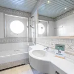 وتشتمل بعض الحمامات على البيديت والمرحاض المنفصل بالإضافة إلى مجفف الشعر وملاءات الحمام.